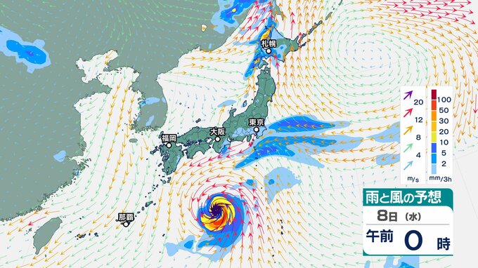 ニュースクリップ 【台風情報】台風22号(ハーロン)日本の南を「非常に強い」勢力で急カーブか…西から東へ 最大瞬間風速60メートル予測【雨風シミュレーション】 2025年10月6日(月) 11:20 国内 天気 8日(水)雨と風のシミュレーション