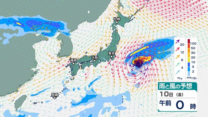 ニュースクリップ 【台風情報】台風22号(ハーロン)日本の南を「非常に強い」勢力で急カーブか…西から東へ 最大瞬間風速60メートル予測【雨風シミュレーション】 2025年10月6日(月) 11:20 国内 天気 10日(金)雨と風のシミュレーション