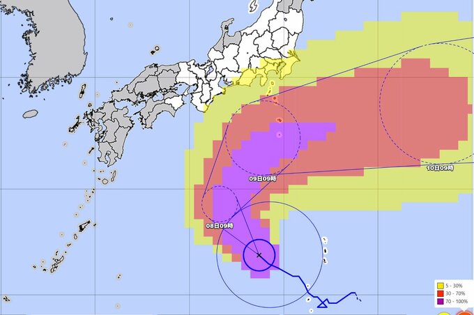 伊豆諸島では、8日は非常に強い風が吹き、9日は一部の住家が倒壊するおそれもある猛烈な風が吹く見込みです。