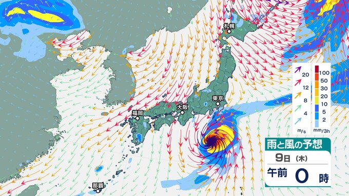 ニュースクリップ 【台風22号(ハーロン)】9日に “非常に強い” 勢力で伊豆諸島へ 最大瞬間風速65メートルの “猛烈な風” に厳重警戒【雨と風のシミュレーション】 2025年10月7日(火) 11:55 国内 天気 9日(木)雨と風のシミュレーション