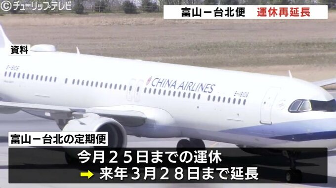 富山と台北を結ぶ「定期便」の運休が2026年3月末まで再度延長されることが決まりました。運航するチャイナエアラインは、「航空機の機材繰りが厳しいため」としています。