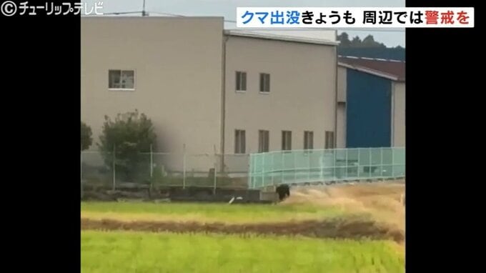 田んぼの中を走るクマ。これは8日朝、富山市吉岡で撮影された映像です。