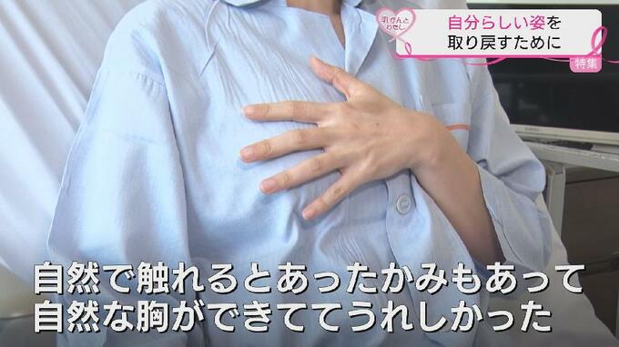 「自然で触れると温かみもあって、自然な胸ができていて嬉しかったです。先生を信頼してやってよかったなと今は思っています。もし今、乳がんと闘う中で絶望の中にいる人がいたら、乗り越えて、幸せに暮らしている人がいることを伝えたい。“仲間がいる”ということを知ってほしいんです」