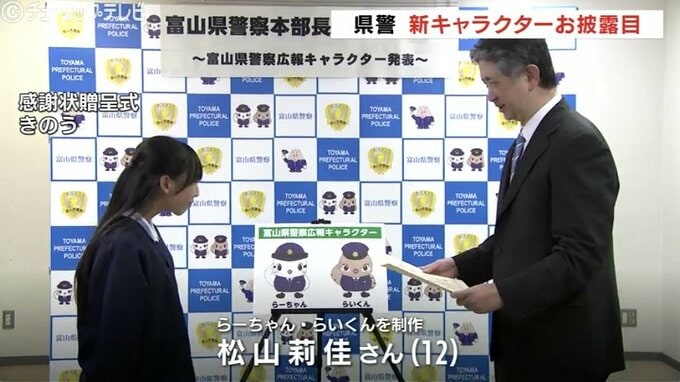 今月8日、「立山くん」に続く、富山県警の新たな広報キャラクターがお披露目されました。