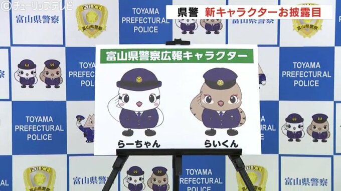 富山県警の新たな広報キャラクターとしてお披露目されたのは、ライチョウの双子、姉のらーちゃんと弟のらいくん。警察の活動を身近に感じてもらおうと制作されました。