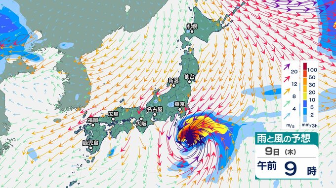 ニュースクリップ 【台風情報】“非常に強い” 勢力の台風22号(ハーロン)最大瞬間風速65メートル 日本の東を北東へ進む…10日には「はるか東」へ【雨と風のシミュレーション】 2025年10月9日(木) 14:05 国内 天気 9日(木)雨と風のシミュレーション