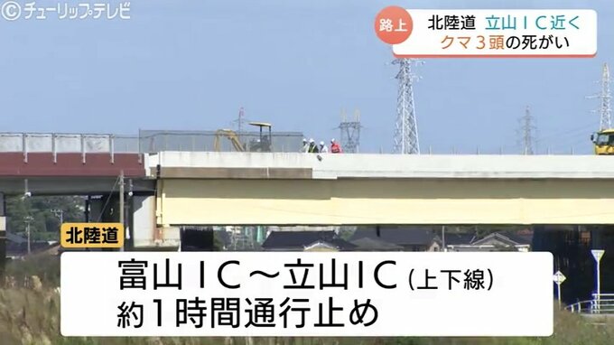 北陸自動車道ではクマの死がい処理のため、富山インターチェンジから立山インターチェンジまでの上下線がおよそ1時間に渡り通行止めとなりました。
