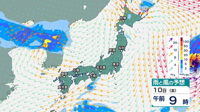 ニュースクリップ 【台風情報】台風23号(ナクリー)奄美大島の東 通過後 “中心気圧985hPa” に発達へ 最大瞬間風速 45メートルを予測【雨と風のシミュレーション】 2025年10月10日(金) 11:10 国内 天気 10日(金)雨と風のシミュレーション