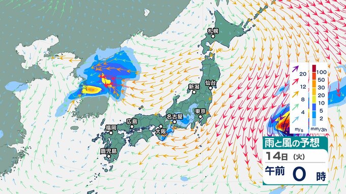 ニュースクリップ 【台風情報】台風23号(ナクリー)奄美大島の東 通過後 “中心気圧985hPa” に発達へ 最大瞬間風速 45メートルを予測【雨と風のシミュレーション】 2025年10月10日(金) 11:10 国内 天気 14日(火)雨と風のシミュレーション