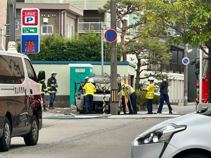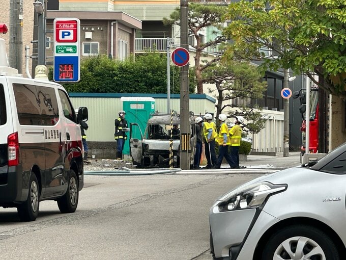 10日午後1時41分頃、富山市の中心街、西町付近で車を焼く火事がありました。1人がけがをしているとの情報が入っています。