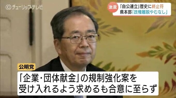 公明側は継続の条件として「企業・団体献金」の規制強化案を受け入れるよう求めましたが合意には至らず、公明党の斉藤代表は高市総裁に連立から離脱する考えを伝えました。