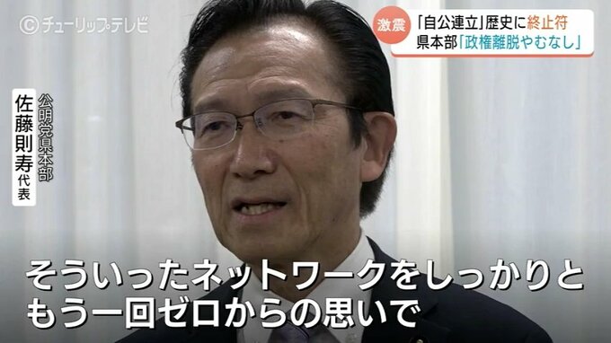 連立離脱を受け公明党富山県本部の佐藤則寿代表は。