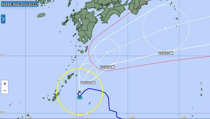 台風23号(ナクリー)は11日朝、奄美大島の南南東約180kmで停滞していて、今後北上する見込みです。