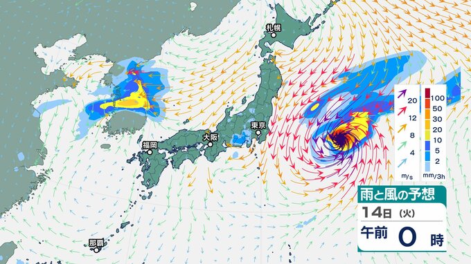 ニュースクリップ 【台風情報】台風23号(ナクリー)奄美大島の南南東で停滞…12日にかけ北上しながら “強い” 勢力に発達へ【雨と風のシミュレーション】 2025年10月11日(土) 09:20 国内 天気 14日(火)雨と風のシミュレーション