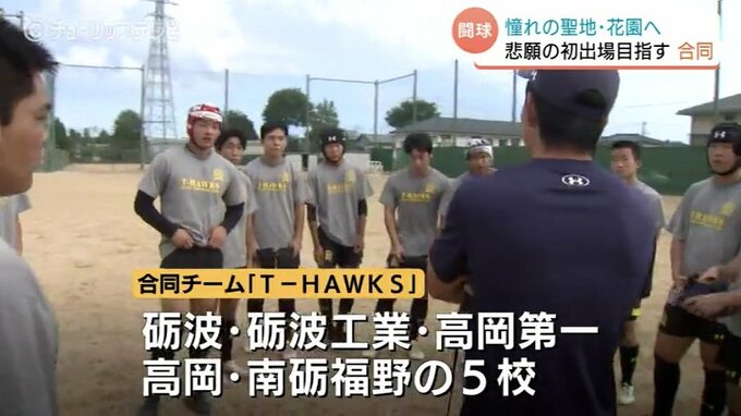 ことしは砺波・砺波工業・高岡第一・高岡・南砺福野の5校からなる合同チームです。チーム名には砺波地区や高岡地区を代表して戦うという意味が込められています。