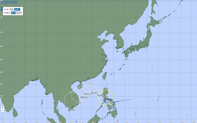 ▼21日午前9時には、台風は南シナ海で最も勢力が強まり、進行速度は西に時速15kmと遅くなる予想です。中心気圧は990hPa、中心付近の最大風速は30m/s、最大瞬間風速は40m/sに達する見込みです。