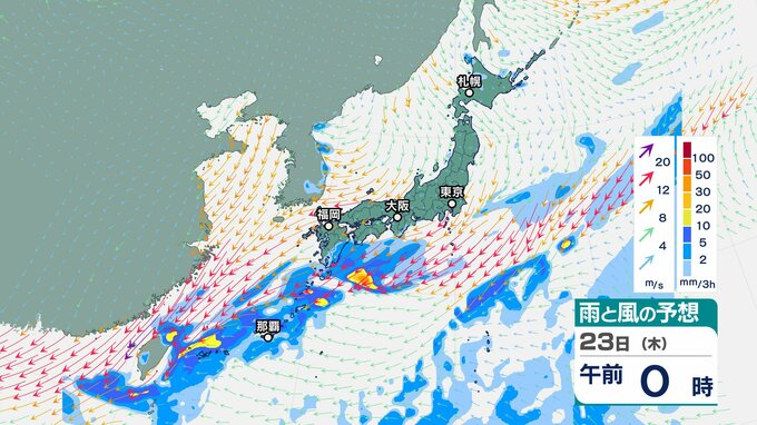ニュースクリップ 奄美と沖縄 この時期としては“10年に一度”レベルの高温の可能性 奄美は平年差+1.6℃以上か 早期天候情報を発表 2025年10月20日(月) 16:51 国内 天気 23日(木)雨と風のシミュレーション