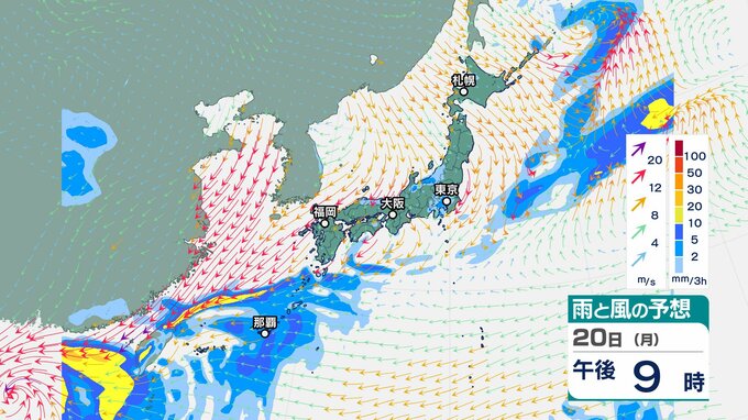 ニュースクリップ 21日は多いところで1時間に50mmの降雨予想 22日ごろにかけ前線が停滞の見通し 土砂災害や河川の増水に注意を 鹿児島【雨雲シミュレーション】 2025年10月20日(月) 18:04 国内 天気 20日(月)雨と風のシミュレーション