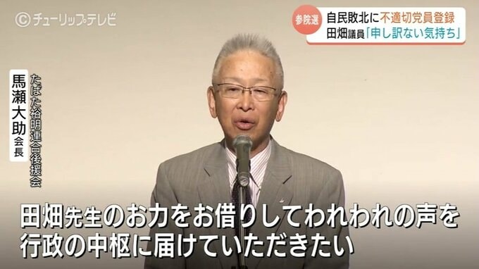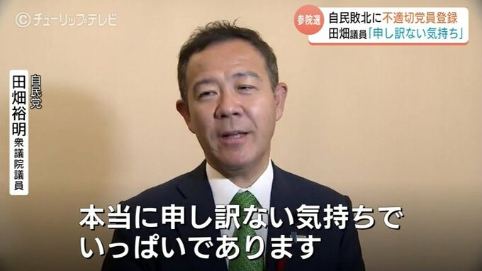 自民党県連は9月、ことし7月の参院選で現職候補が落選した敗因に田畑裕明衆議院議員の無断・架空党員登録問題を盛り込みました。田畑議員は「申し訳ない気持ちでいっぱい」と反省の言葉を述べた一方、議員辞職や離党は否定しました。
