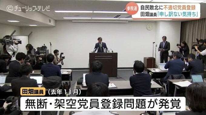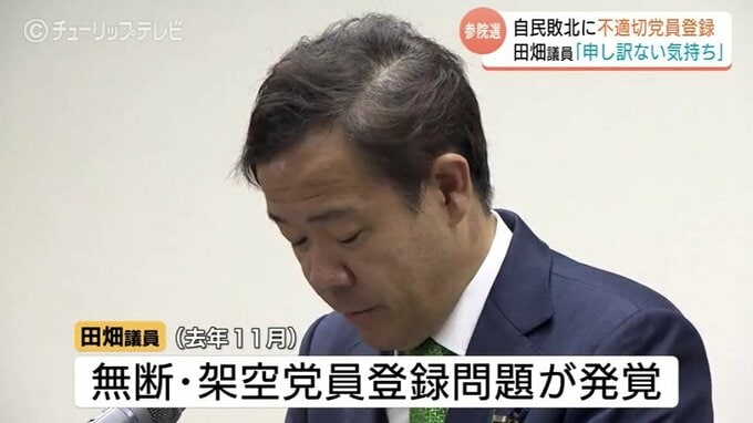 田畑議員を巡っては、去年11月に無断・架空の党員登録問題が発覚しました。