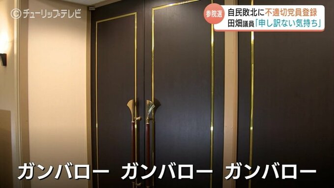 「田畑裕明を支えるためにも、私たちそして田畑裕明本人が、ガンバロー、ガンバロー、ガンバロー」
