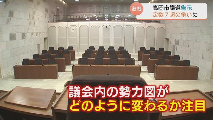 任期満了に伴う高岡市議選が19日に告示され、定数25を7人上回る32人が立候補する激戦となっています。市長選のしこりが表面化したまま迎えた今回の市議選では自民党の市長派と非市長派で議会内の勢力図がどのように変わるのか注目されます。
