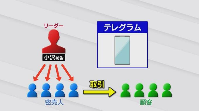 リーダーの小沢被告がテレグラムのアカウントの管理・運営を担当。密売人にメッセージのやり取りを指示していとみられます。
