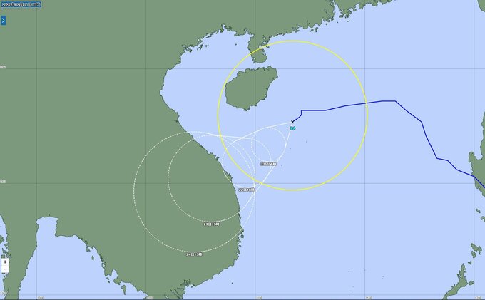 台風24号(フンシェン)は21日夜、南シナ海を南西にゆっくりと進んでいます。