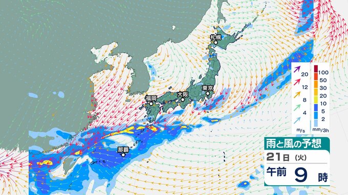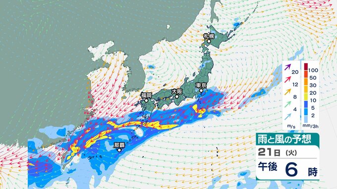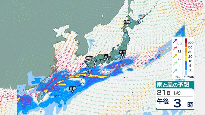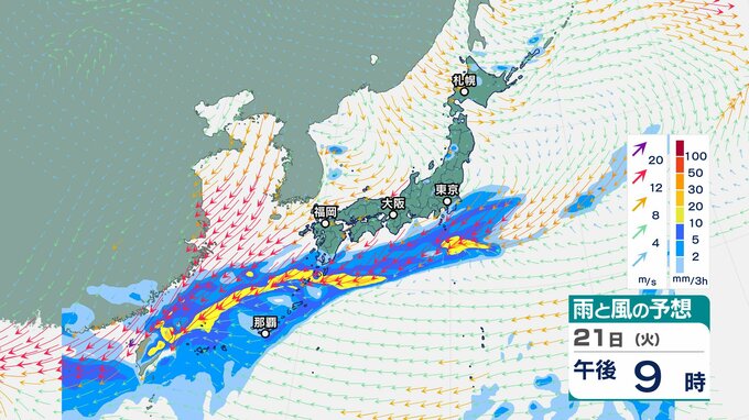 ニュースクリップ 伊豆諸島 22日明け方にかけ、線状降水帯が発生のおそれ… 22日午後6時までに200mmの降雨か 土砂災害や河川の氾濫などに警戒【雨風シミュレーション】 2025年10月21日(火) 21:44 国内 天気 21日(火)雨と風のシミュレーション