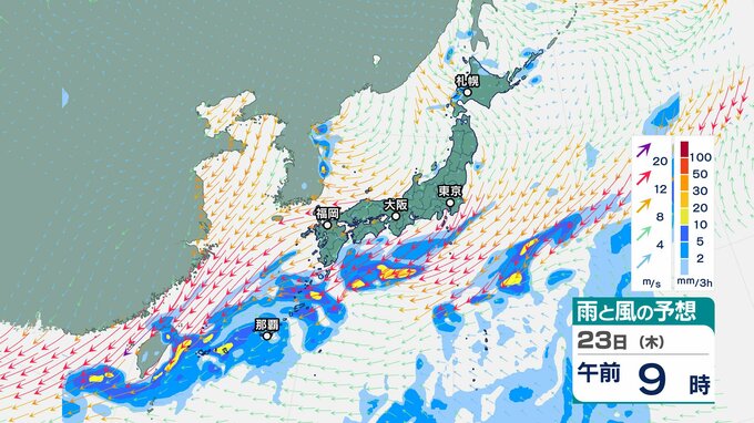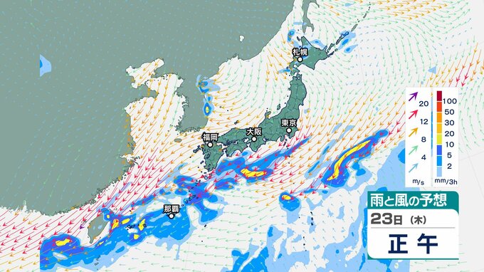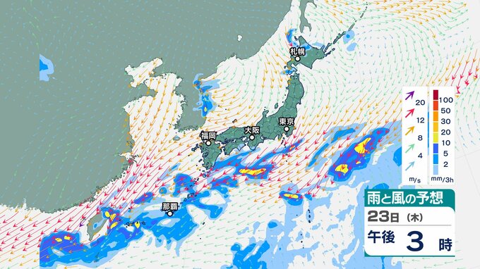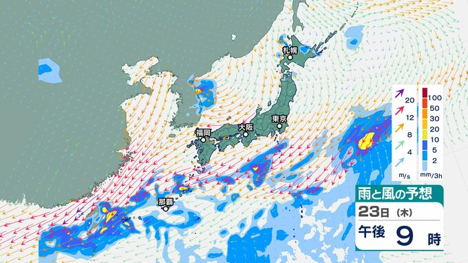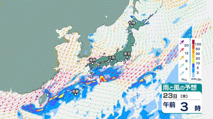 ニュースクリップ 伊豆諸島 22日明け方にかけ、線状降水帯が発生のおそれ… 22日午後6時までに200mmの降雨か 土砂災害や河川の氾濫などに警戒【雨風シミュレーション】 2025年10月21日(火) 21:44 国内 天気 23日(木)雨と風のシミュレーション