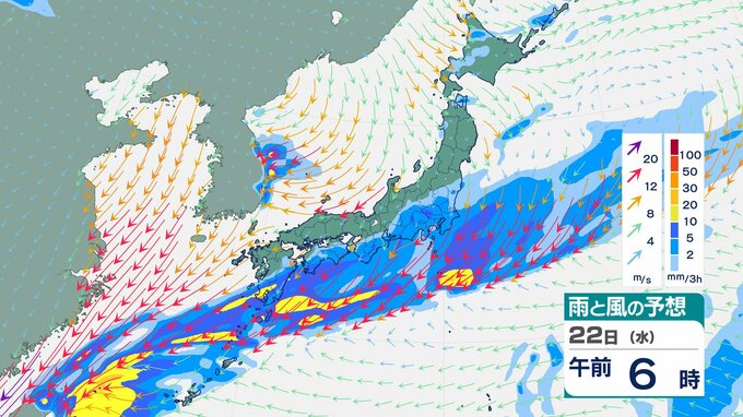 ニュースクリップ 【気象情報】前線の停滞と熱帯低気圧の影響…南西諸島で大雨、土砂災害に警戒 伊豆諸島も23日にかけ注意【雨と風のシミュレーション】 2025年10月22日(水) 07:44 国内 天気 22日(水)雨と風のシミュレーション