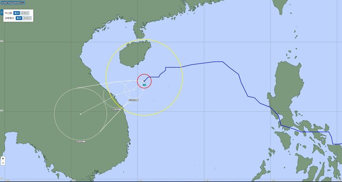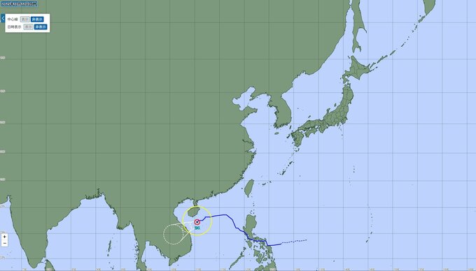 台風24号(フンシェン)は22日、南シナ海を西南西にゆっくりと進んでいます。