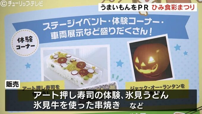 このほかアート押し寿司の体験や名物の氷見うどん、氷見牛を使った串焼きなども販売されます。