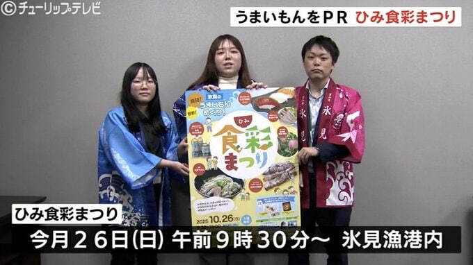 今月26日、富山県氷見市で開催される「ひみ食彩まつり」をPRするため実行委員会のメンバーがチューリップテレビを訪れました。