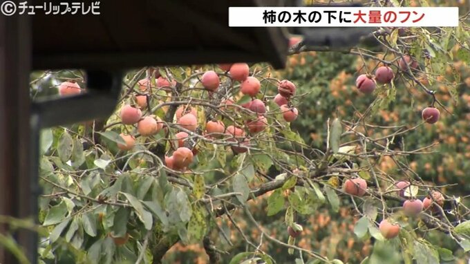 カキの木の下に大量に落ちているクマの糞。富山市松野では連日、痕跡が増えています。