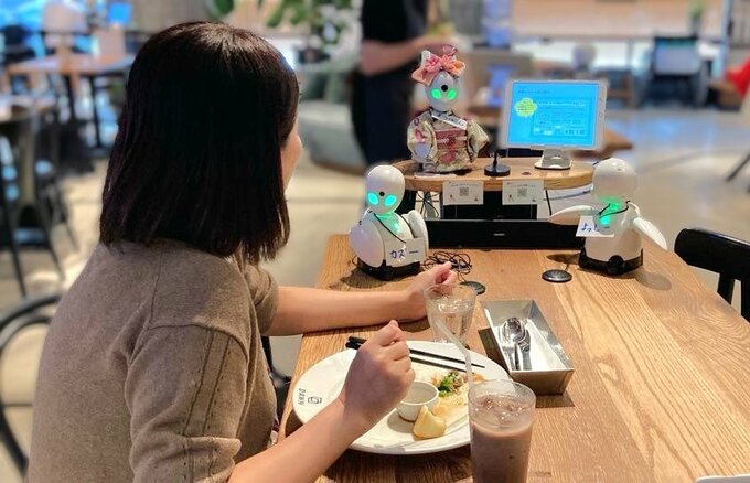 ロボットが接客する東京・日本橋の「分身ロボットカフェDAWN ver.β」で2025年度の「OriHime 2025秋期インターンシップ」が11月5日の最終日に向けて本格化しています。カフェで就業体験をする分身ロボットを操作しているのは、AIではなく、人間です。外出が困難な人たちが遠隔地からオンラインで分身ロボットを操作、スタッフとしての接客やおもてなしの仕方、フリートークを学んでいて、来週からはフロアで実践として接客にあたる予定です。
