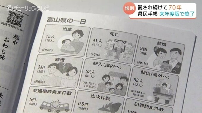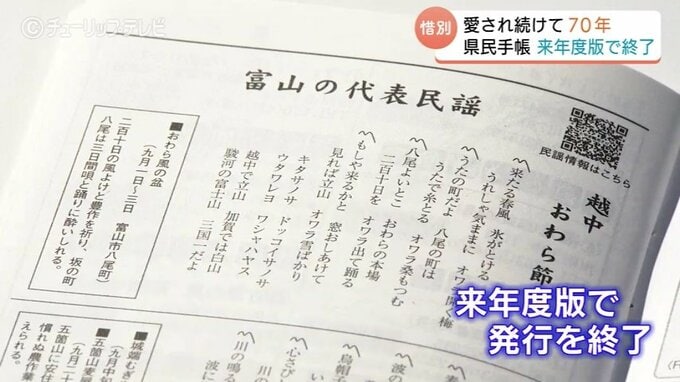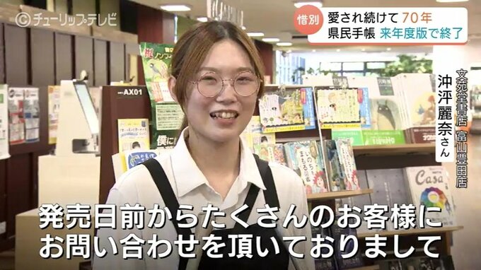 富山県民の生活に寄り添い、長年親しまれてきた富山県民手帳が、来年度版をもって70年の歴史に幕を閉じます。この最後の県民手帳が24日発売され、さっそく購入に訪れた愛用者からは惜しむ声が聞こえました。