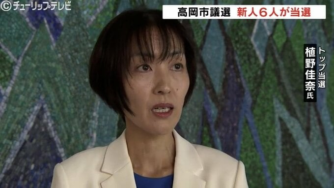 初当選でトップ当選の植野佳奈氏「『高岡愛』ではない方々と対立する構図にはしたくない、と思っておりまして、みんなで一丸になって高岡のために働くべきだとおもっております」