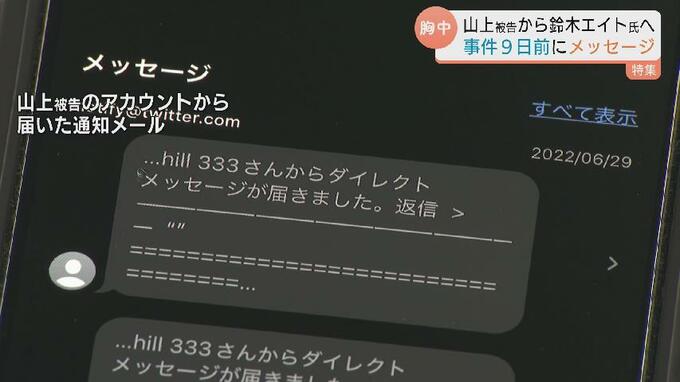 この事件が起こる9日前、鈴木氏は山上被告からSNSでメッセージを受け取っていました。