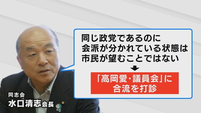 「同志会」の水口清志会長によりますと、本来同じ政党であるのに、会派が分かれている状態が続くことは市民が望むことではないとして、今回の改選を機に合流を打診したということです。