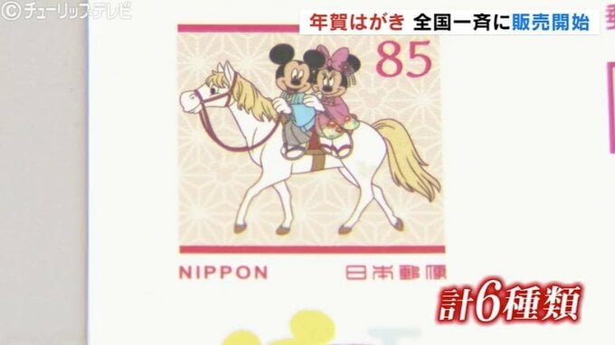 来年の年賀はがきは、ディズニー柄のものや、立山や富山湾の深海を描いたご当地版など6種類が用意され、午前9時の販売開始とともにさっそく買い求める人の姿がありました。