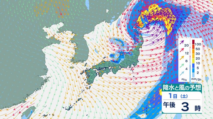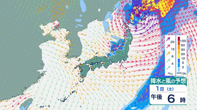 ニュースクリップ 多いところでは150mm超の大雨も… 1日は北日本で大荒れ、北海道「高潮厳重警戒」 西~北日本で落雷や激しい突風に注意【雨風シミュレーション】 2025年10月31日(金) 21:00 国内 天気 11月1日(土)の雨風シミュレーション