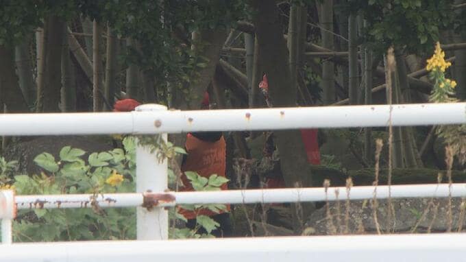 「富山市栗山です。現在クマは藪の中にいるとみられ、市の職員や猟友会が捜索に当たっています」