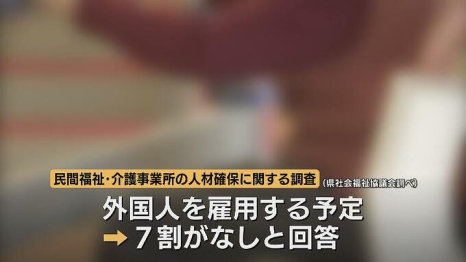 県社会福祉協議会のアンケートでは、7割が外国人を雇用する予定はないと回答しています。(県社会福祉協議会 2025年3月 県内614事業所への調査)