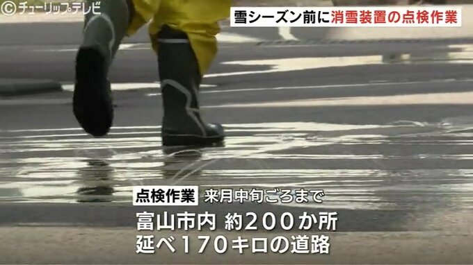 雪のシーズンを前に富山市で消雪装置の点検作業が行われています。