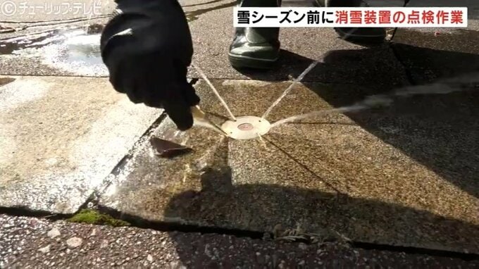 今年は10月中旬から作業が行われていて、6日は富山市の奥田公園周辺で消雪装置を点検しました。