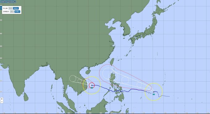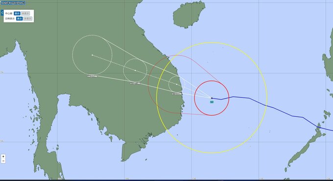 ▼7日午前0時には、台風は「非常に強い」勢力を維持したままベトナムに到達する見込みです。中心気圧は935hPaまで低下し、中心付近の最大風速50m/s、最大瞬間風速70m/sとさらに強まると予測されています。