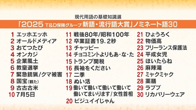 「ことしもいろんなことがありました。戦後80年にトランプ関税。私も行った大阪・関西万博のミャクミャクなどがノミネートされています。富山県民はどの言葉を選ぶのでしょうか?」