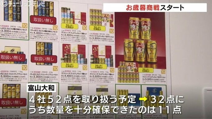 富山大和では、大手ビールメーカー4社52点を取り扱う予定でしたが、店頭に並んだのは32点。
