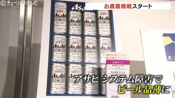 一方、お歳暮の人気商品の1つ、ビールは、アサヒグループホールディングスに対するサイバー攻撃によるシステム障害の影響で、品薄状態になっています。